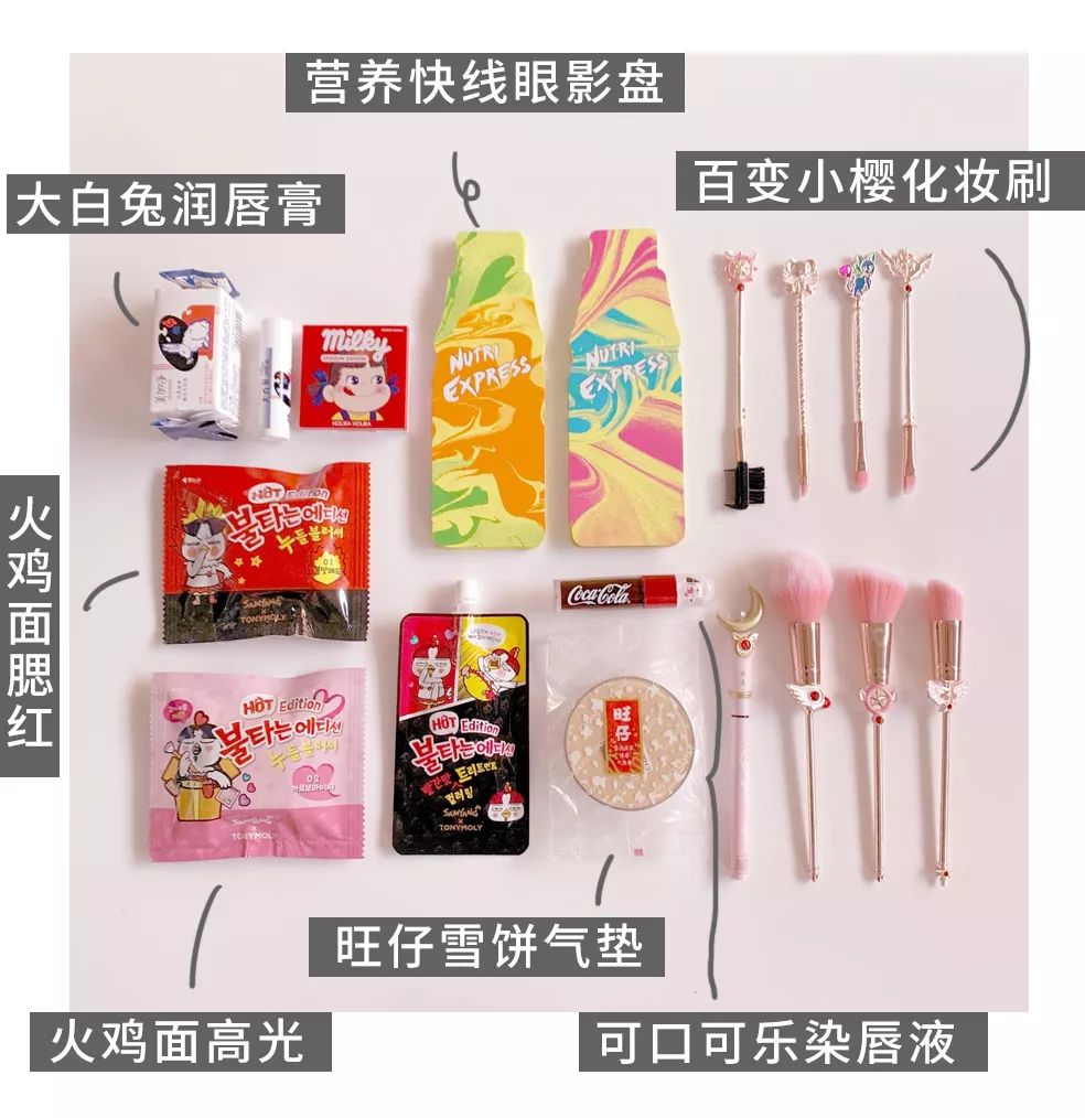 像周黑鸭口红,不二家眼影,火鸡面彩妆系列……